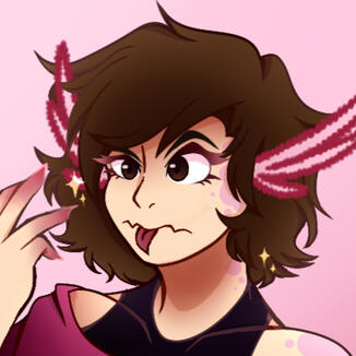 🍰 Hello new axolotl! My name is Axie/ Axo, I'm 18 years old, I'm a digital artist and 2D Vtuber, a hybrid axolotl who is a fan of Resident Evil and Godzilla 🍰